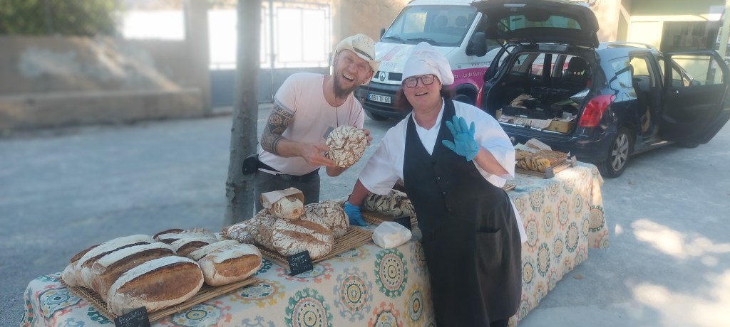 We are now working at the night market in the town of Maury, on the road to Perpignan. First impressions were not of great confidence. I think we are the only ‘professional’ seller there, apart from an excellent baker and a very good goats cheese producer. In the main, the rest of the sellers are small producers who only do the Maury market.
